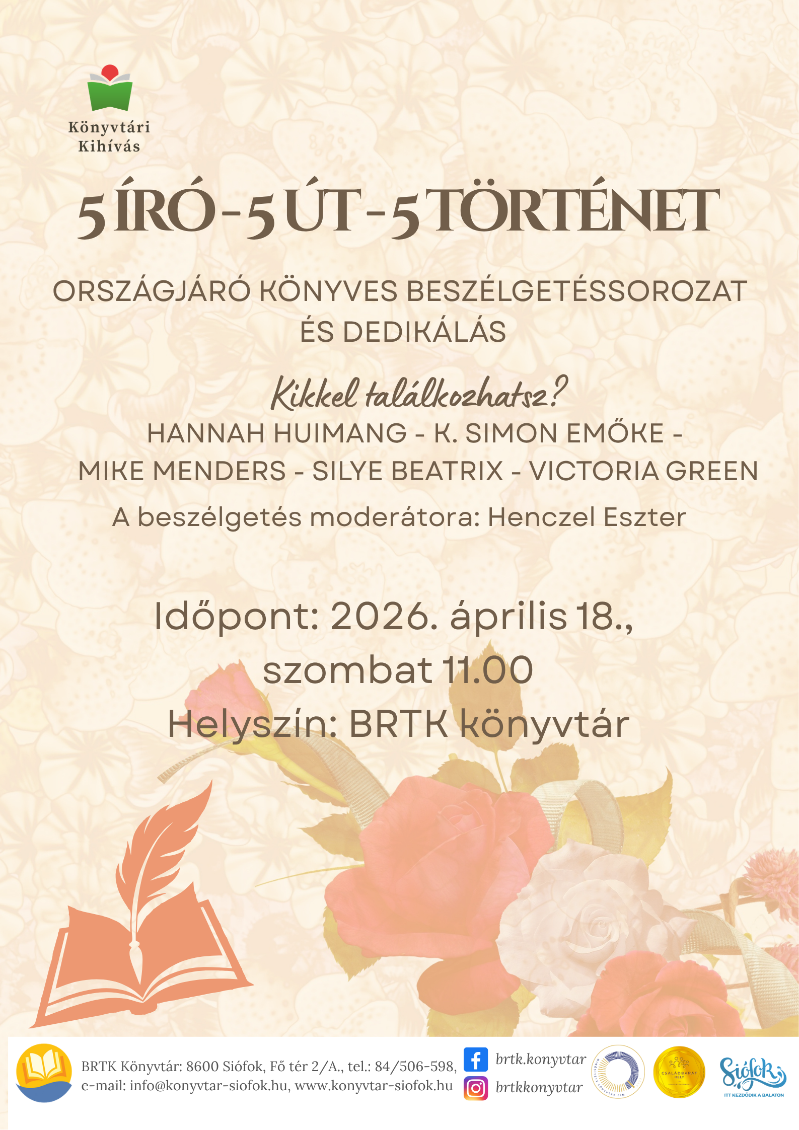 5 író – 5 út – 5 történet | Országjáró könyves beszélgetéssorozat és dedikálás – 2026.04.18.