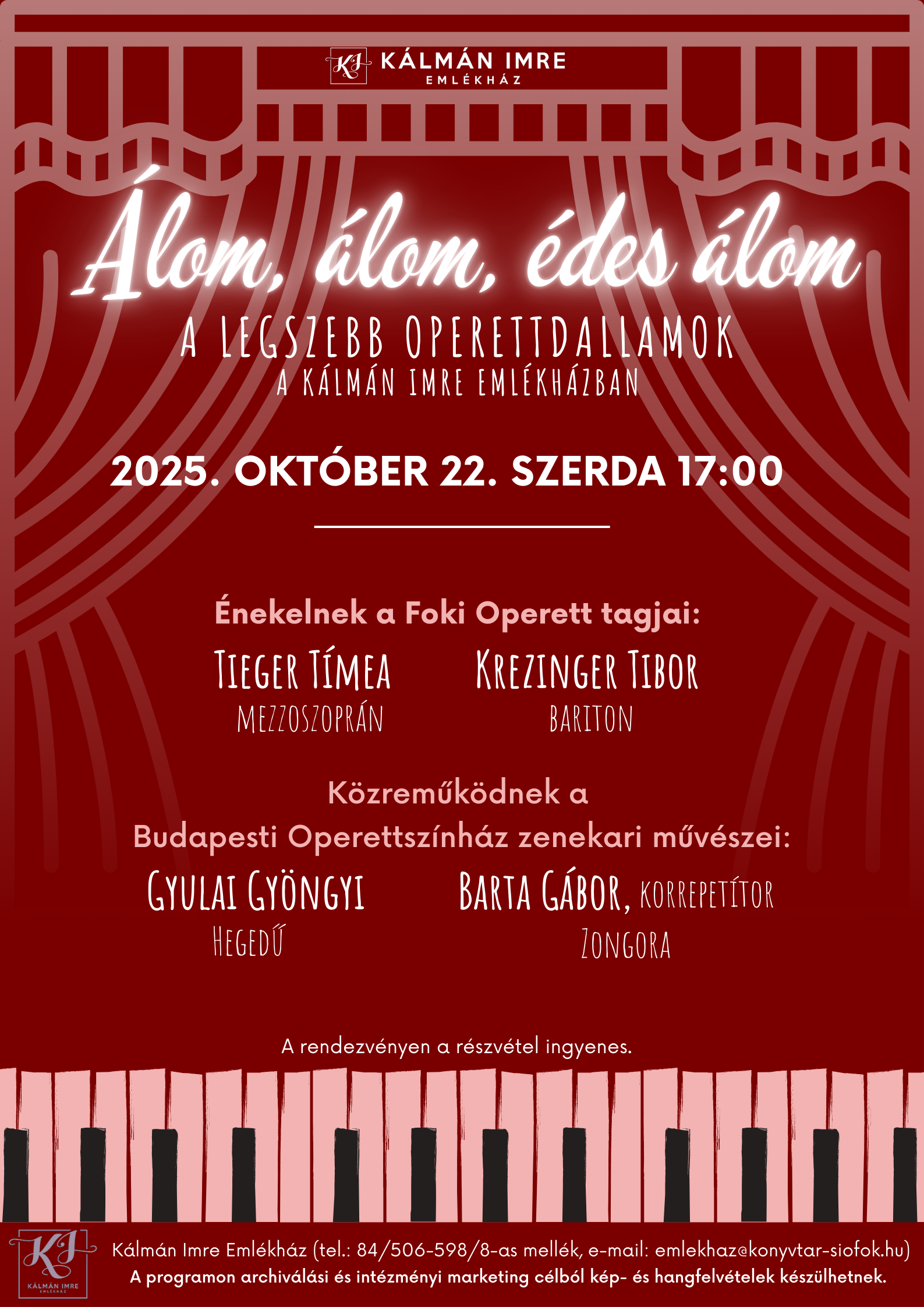 Álom, álom, édes álom: A legszebb operettdallamok a Kálmán Imre Emlékházban – 2025.10.22.