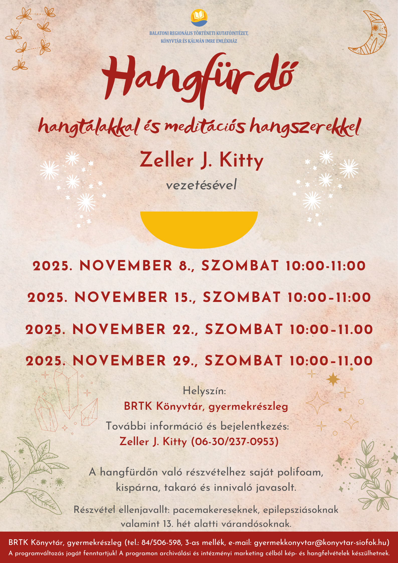 Hangfürdő hangtálakkal és meditációs hangszerekkel Zeller J. Kitty vezetésével – 2025.11.